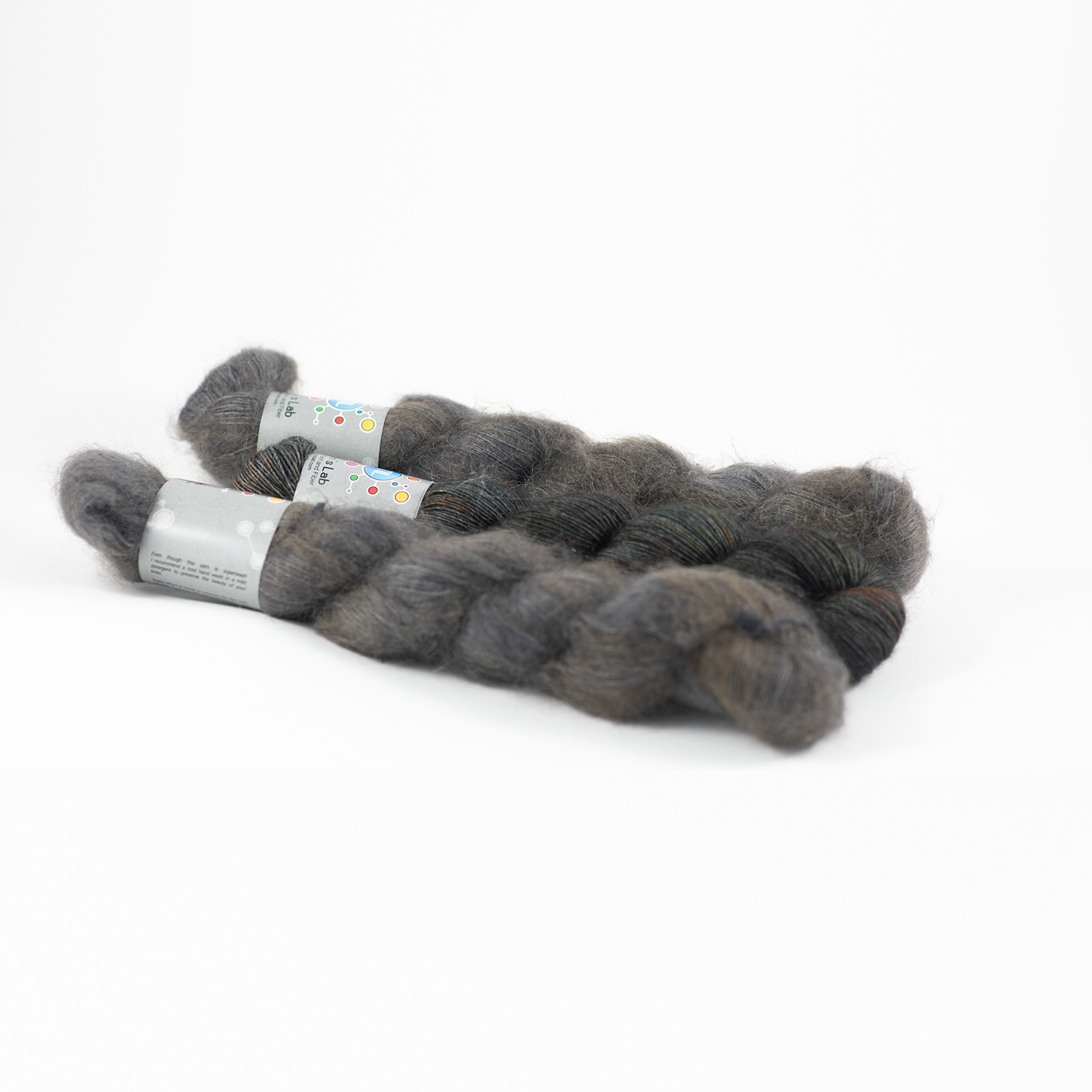 - the yarn in colors: 2x Silky Mohair: Ash, 1x Merino Singles: Poltergeist.