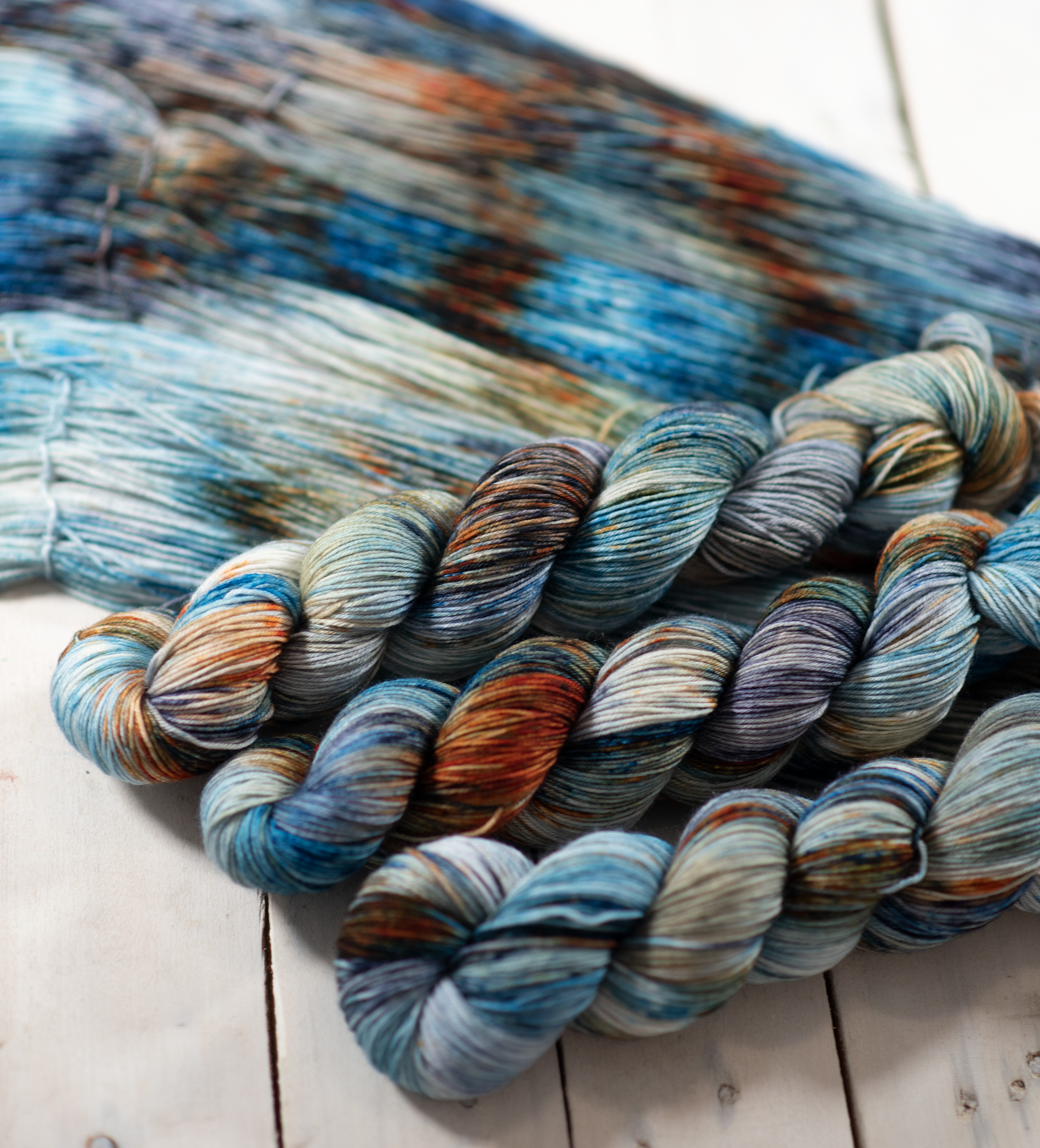 This superwash merino takes dye perfectly for vivid semi-solids as well as artistic colorplay.