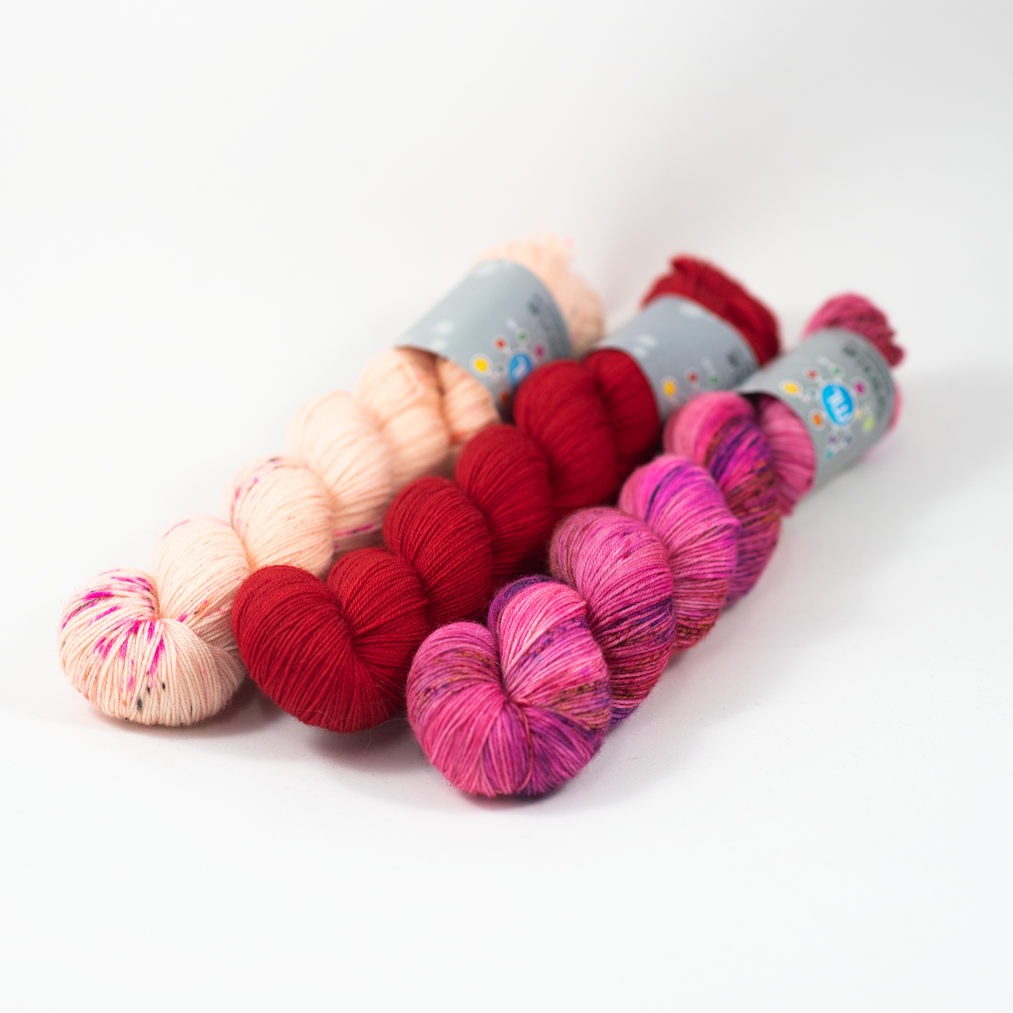 A set of 3 skeins of Comfy Merino for a Midnight Slayer by Julie Knits in Paris.