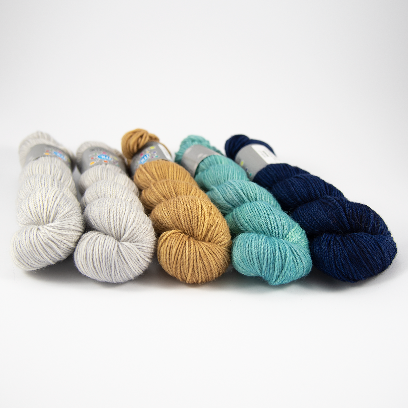 - the yarn in colors: Snow illusion x2, Wheat, Algae and Admiral.