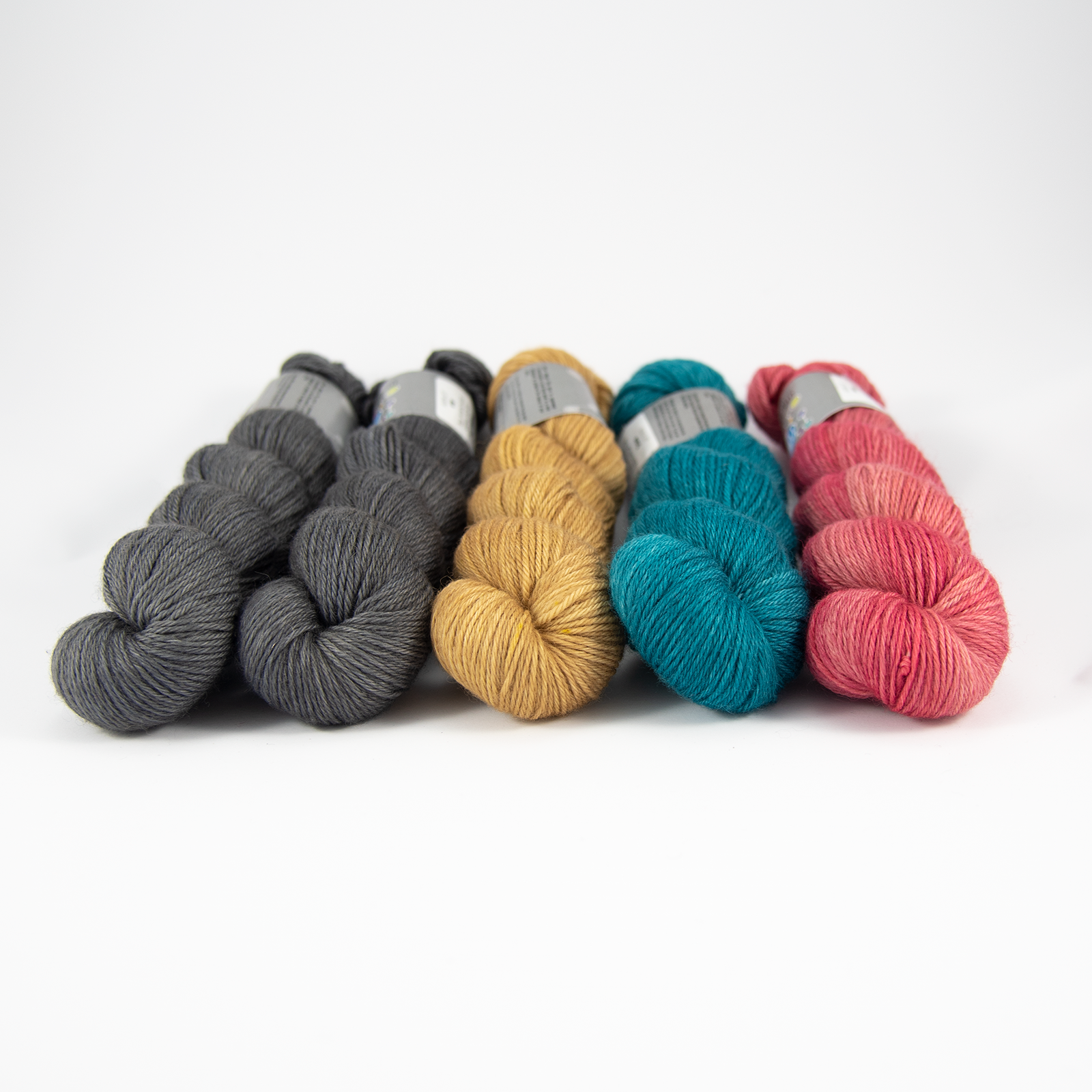- the yarn in colors: Ash x2, Wheat, Drake and Petals.