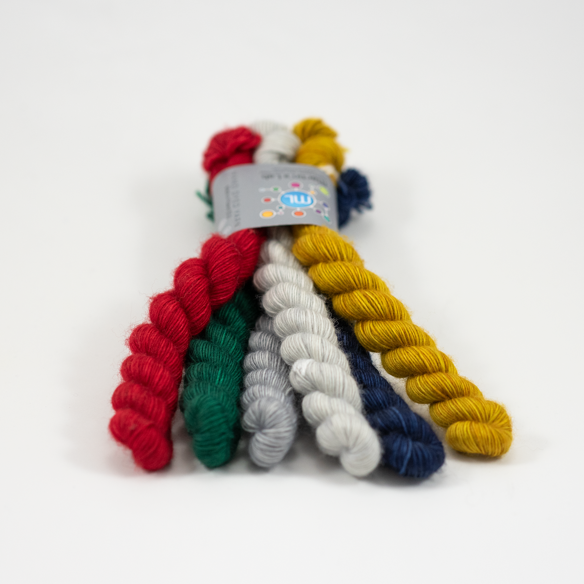 Ten zestaw 6 mini motków ze 100% wełny merino superwash o pojedynczym skręcie, pięknie przyjmuje barwnik, zapewniając żywe i wspaniałe kolory.
